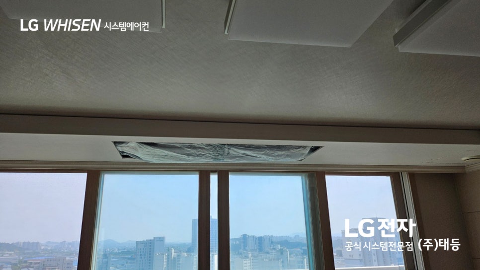 엘지 시스템에어컨은 천장 위에 슬림하게 붙어있어