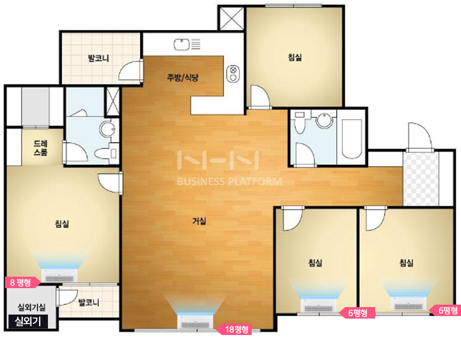 거실에 엘지 시스템에어컨 18평형 시공을 위한