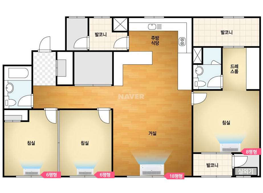 작은 방 2 곳에는 5평형 LG시스템에어컨 신형