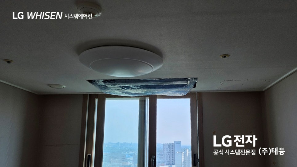 엘지 시스템에어컨은 천장 위에 슬림하게 붙어있어