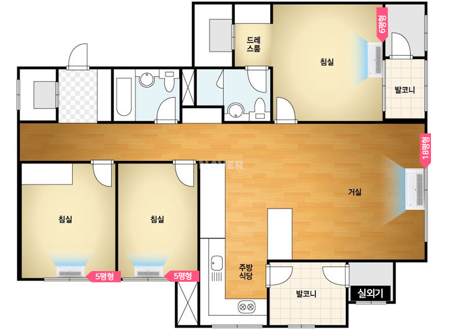 4대 5마력 시에는 18평+8평+6평+6평으로